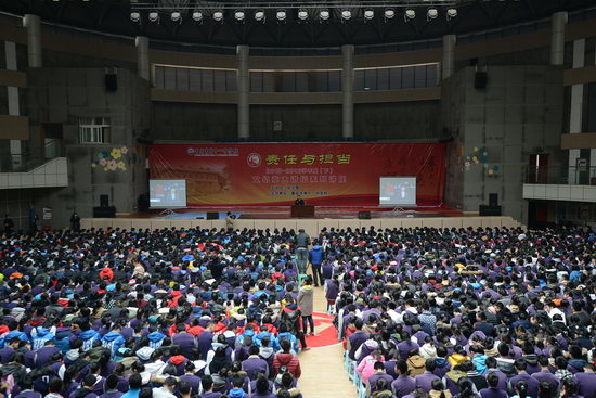 张先生认为学习的过程就是懂得责任、学会担当的过程。他说:青春岁月里,我们每天都在为自己的梦想努力。没有人的成功可以全凭运气,运气对待每一个人都极为公平。在机遇面前,我们需要鼓起勇气,迈出我们的第一步,把握好我们的人生方向。只有学会了担当才能更好的进行人生抉择,才能在祖国最需要的时候做出更大的贡献。他解释了自己放弃前往美国读书的原因,认为为祖国工作才是最有意义的事情。他劝诫大家,责任与担当不是一句简单的口号,而应是我们生活学习的动力。在国家、学校、老师、家长、同学最需要的时候勇敢面对,不怕困难,不忘初心。在梦想面前,才能有好的途径。