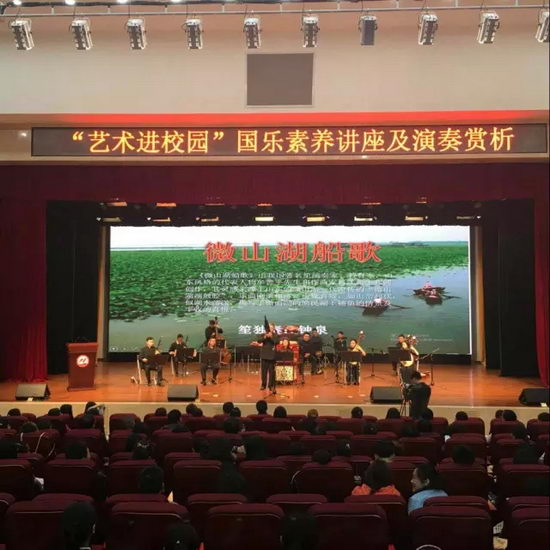 3月16日-3月18日,由南岸区教委主办的一场名为“聆听春天,乐韵书香”的国乐素养讲座及演奏赏析活动。分别在南坪弹子石小学CBD校区、广益中学操场和11中文益堂举办。来自中国广播民族乐团的十来位艺术大师走进这三所学校,为六千余师生和家长带来了一场民族乐盛宴。