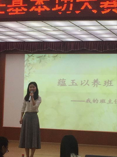 此次大赛有来自不同学校的13名班主任参加。整场比赛包括“我的班主任观”演讲及答辩、才艺展示和教育案例写作三个环节。其中现场展示包括才艺展和“我的班主任观”演讲及答辩两个环节。