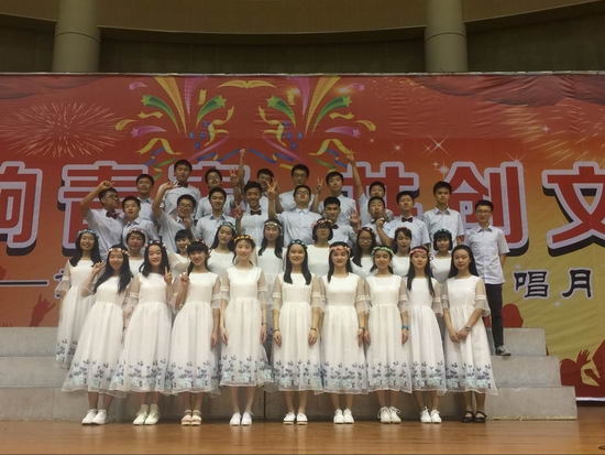 首先上台的是高一8班。身着浅色礼服的他们在演唱完规定曲目之后,深情演绎了一曲《当你老了》。之后的国际班——11班激情澎湃地为大家呈现了一出奋勇的革命进行曲《黄河大合唱》;国际班1班更有班主任张怡老师倾情演出,台下掌声一片。排在第七号出场的17班和十号上场的5班则分别以《贝加尔湖畔》和《我的中国心》赢得评委一致好评;高19班和21班则邀请了班级科任老师友情加盟,师生同台互相助力,体现了“爱”的主题。