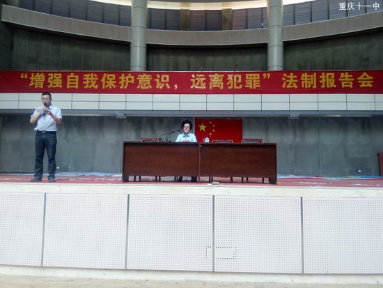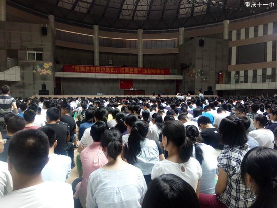 2016年6月12号,由重庆市第十一中学校高2018级主办的“增强自我意识,远离犯罪”法制报告会在学校体育馆举行。
