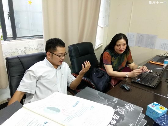 随后,全体备课组教师参与讨论第五周袁组长校优质课展示课题设计,集体打磨精品课程。袁组长首先为全体备课组教师详细说明课题选择、课题初步设计、磨课安排、课程设计中遇到的问题,备课组全体教师就课题进行了激烈讨论。张怡老师从教材内容安排与知识衔接、课题重难点处理提出意见,陶练松、张文苑老师就课程资源与材料选择进行了构想,王明超老师从活动形式进行了讨论。袁组长就备课组讨论情况对课题进行了及时优化。