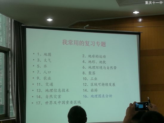 2016年9月24号上午8:00,我校高三地理备课组的吴黎明、邓虹老师在备课组长胡再贵老师的带领下,参加了重庆市2017地理高考复习报告会。