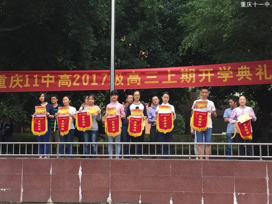 在升旗仪式过后,高2017级举行了9月份年级表彰大会,年级领导班子对在9月份获评“五星班级”的集体和表现优秀的学生会干部进行了表彰并颁发了锦旗与奖状,全体师生在掌声与欢呼声中见证了这一荣耀时刻。