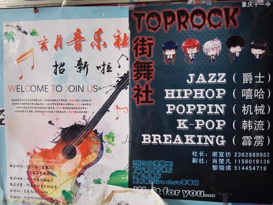 所谓“就职压力大”,社团招新也不例外。为抢人才也是各出奇招,广告词配上网络红曲的节奏,也是让人欲罢不能。卖萌、吆喝,场面十分热闹。就连学生会内部招新也是花样百出,纠察队、卫生部、宣传部等各个部门为了新人,也是拼了。同学们的热情也不亚于各个社团,新生们选择自己喜欢的社团,积极配合负责人的工作,释颜动漫社、挐云戏剧社、模联社和玄月音乐社等多个社团,十一中学子更中意谁?