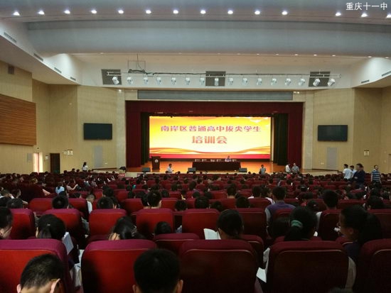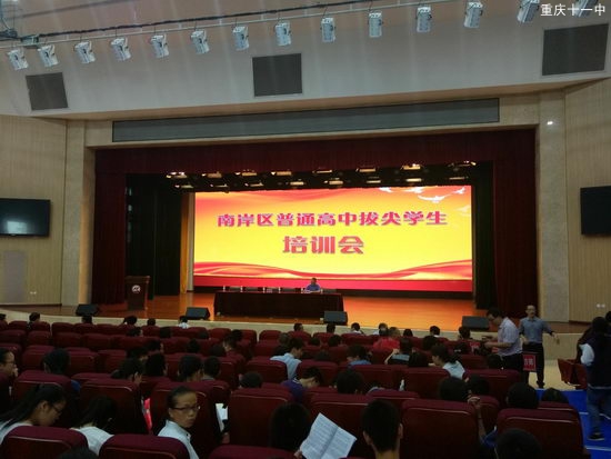 为了适应新高考,提高学生成绩,高效培养拔尖学生,重庆市第十一中学校邀请了湖南师范大学校长助理,全国金牌教练蔡老师在文艺堂举办南岸区普通高中拔尖学生培训会。南岸区教委、教师进修学院领导和南岸区各校校长,竞赛学科教练和学生及家长共600余人参加了此次培训会。
