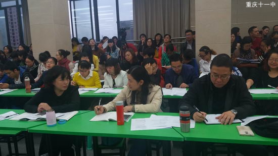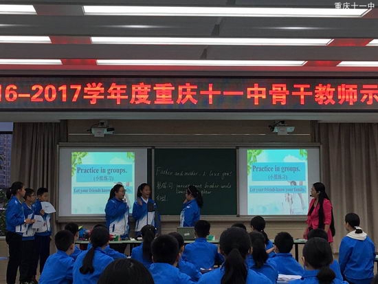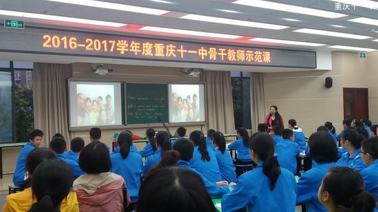 这是一节人气爆棚的骨干示范课,前来听课的除了南岸区所有的初中英语老师外,还有区教研员、重庆市教研员以及来自重庆市外其他省市的一些骨干教师,真正的是听课老师比学生多。整堂课学生朝气,教师洋气,课堂喜气;在“My Family”这堂课中,周老师设计巧妙,主题鲜明,活动环环相扣,课堂精彩地演绎了家国情怀。其中最值得一提的是受到重庆市级英语教研员伍家文老师高度评价的教学设计,本课主线清晰明显,主要有三条主线:知识学习、能力建构、德育教育。就知识学习而言,本课设计是基于学生能够独立完成单元话题终极写作前的单元重难点复习和读写课。采用了以听说促读写的教学方法。该方法主要步骤为先是环境布置,再是读写热身阶段,然后是读写准备阶段,接着是读的阶段,最后是写作阶段。一步接着一步,循序渐进,非常符合学生认知规律,有效地帮助了学生学习提升。就能力建构而言,内容安排从单词、句子到短文形成一条清晰的主线,循序渐进地培养学生的口笔头表达能力。单词部分有音标词的拼读,单词的拼写和单词在句子中的活用。重视了名词复数这个语法知识。句子部分主要练习了This is..., That is..., These are... 和Those are...等句型,为后面的写作打下基础。短文部分从阅读入手,通过圈出名字,补全句子等方法,让学生学习和掌握好文本。然后从读过渡到写;从先写出一般性的短文,通过美化作文,到形成优秀的文章。随着各个活动的进程学生能力得以提升,清楚地看得见学生会用所学的知识完成任务。通过为学生搭建足够的梯子,让学生在单元话题牵引下,词汇、句子、语篇等重难点得以突破,从而实现培养与提升学生语言综合运用能力。最后是德育教育,在大家欣赏班上学生的全家福的过程中,大家回忆起照片中定格的美丽瞬间,以及照片里的故事,全家其乐融融。这有利于良好亲子关系的形成。周老师循循善诱,引导大家:我们要爱我们的小家,也要爱56个民族组成的大家。在习大大的领导下,努力地把我们国家建设得更好。鼓励学生像11中校训中要求的做有家国情怀的栋梁之才,将德育教育春雨无声润万物般穿插在英语课堂中。如此巧思妙想引得在座老师连连称赞。