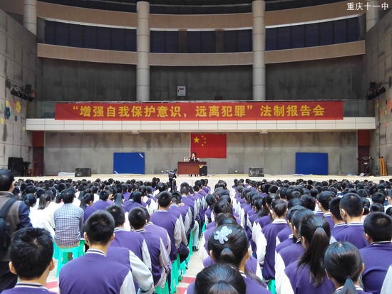 2016年10月13日下午,我校高2019级全体学生在体育馆聆听了来自“全国优秀青少年法治辅导员”、重庆市“十大法治人物”、南岸区人民法院周俐莎法官的法制讲座。