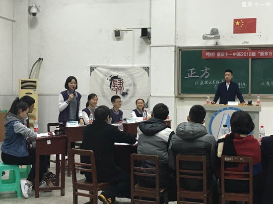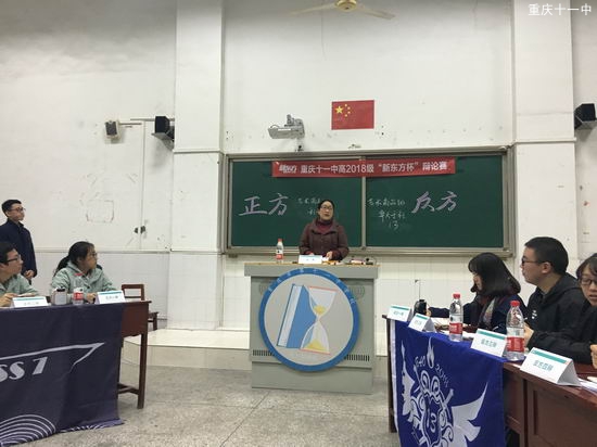 2016年11月10-11日晚上6:00-9:00博文楼热闹非凡,重庆十一中高2018级在此举行了第一届“新东方杯”辩论赛。此次辩论赛由高2018级学生会主办,新东方、优能教育培训学校赞助。辩论赛由12场辩论组成,年级24个班抽签决定对阵班级。辩论赛特邀高2018级的20位班主任担任评委老师。