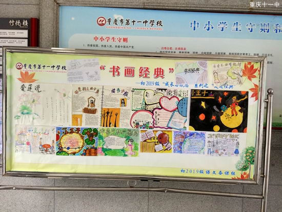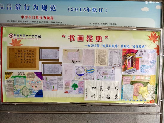 2016年11月16日,初2019级语文备课组举办的 “书画经典”活动作品展在博文楼、修德楼底楼大厅展出。