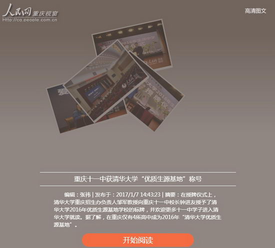 [人民网重庆视窗] 重庆十一中获清华大学“优质生源基地”称号