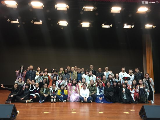 2017年2月26日晚七点,重庆十一中文益堂八百多座位座无虚席,高2018级七班学生给我们带来了一场盛大而华丽的文化与思想盛宴。到场的有李顺林副校长,教务处许刚强副主任、毛阿英副主任,高二年级年级黄伟组长和徐顺光组长以及学校部分老师。