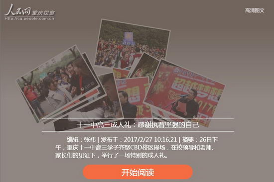 [人民网重庆视窗] 十一中高三成人礼:感谢执着坚强的自己
