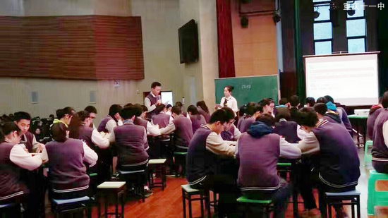 二、致欢迎辞。重庆11中校长钟进友发表了热情洋溢的致辞,并向参会的重庆市初三化学教师介绍了我校海航班招生情况。