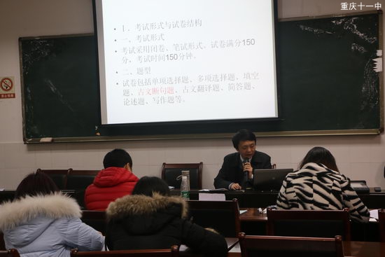 3月21日上午,在语文区教研员傅文霄老师的组织下,南岸区高三年级所有语文老师齐聚重庆十一中CBD校区,展开了一场关于高三作文教学的区教研活动,并聆听傅文霄老师关于2017高考考纲、语文二轮复习的讲解与指导,十一中刘东华老师也向到场的所有老师献上了一堂精彩生动的作文课。