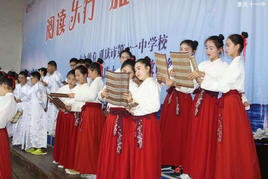 钟进友校长为本次大阅读活动致辞,强调了大阅读活动的意义。接着,在李校长、钟校长、高2018级语文教师张盈、欧校长、杨主席、钟书记的带领下,分年级分别诵读了《离骚》、《观沧海》、《春江花月夜》等诗词,随后各学科的代表教师都身着古装、充满激情分别诵读古诗词,使全校师生都享受这古文化的洗礼。最后,在全校学生齐诵《正气歌》雄浑的气势中,本次活动的启动仪式落下了帷幕。