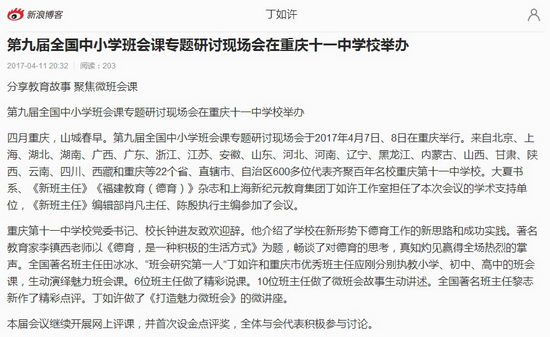 第九届全国中小学班会课专题研讨现场会在重庆十一中学校举办