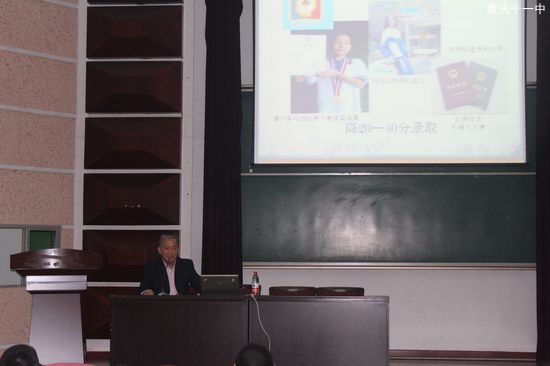 2017年10月22日晚,重庆市发明协会副理事长、重庆市创新教育研究中心主任皮发万同志在科技报告厅为我校科技爱好的师生们进行了题为《让知识创新充满我们的生活》的大型讲座。全校初高中300多科技爱好者聆听了此次讲座。在长达近2个小时的讲座中,皮主任用生动鲜明的案列,阐述了什么是知识创新以及知识创新的运用,其中他首次提出的学校成绩等于学习效率(思维速度)与学习时间的乘积就属于知识创新的案例。先有知识创新才有技术创新,创新其实很简单,很广泛,关键是我们要用创新思维的方法去思考问题,解决问题,创新充满我们的生活,有了创新,社会才能发展,人类才能进步。会场中有专家与学生的互动,有笑声,有掌声,总之同学们热情高涨,听后感觉受益匪浅。