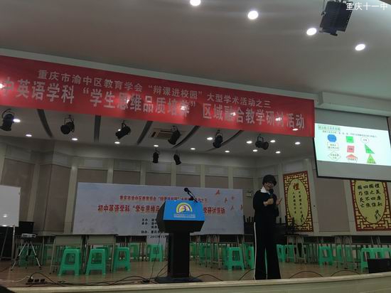 研修活动的最后,渝中区英语教研员张理英做总结发言。张老师充分肯定了两位上课老师为此次活动作出的努力以及整个辩课活动取得了圆满的成功。她指出:“此次辩课的双方辩友观点明确,论据充分,妙语连珠”。同时她还寄语全体与会老师:“教学目标的定位一定要适合学生的思维,老师们上课一定要为学生搭建必要的支架,解决好预设问题与现场生成的问题是成功课堂的关键”。她还倡导“英语教学要课内阅读与课外阅读相结合,老师们要做好引领者!”