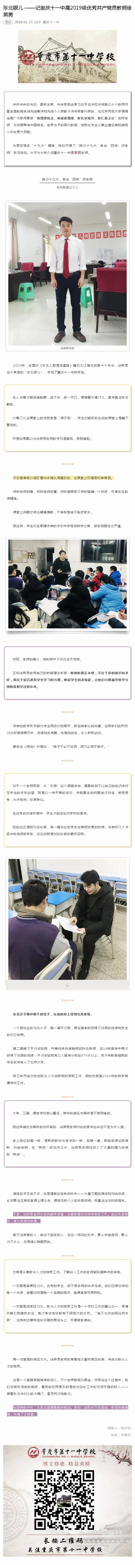 [重庆11中官方微信]东北银儿 ——记重庆十一中高2019级优秀共产党员教师徐英男