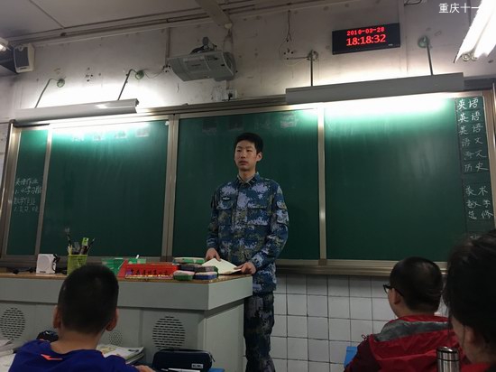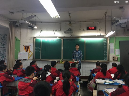 3月28日晚自习前读报时光,有一位很优秀,很帅气的大哥哥受向老师之托,来为我们做经验交流,他是一名来自十一中高中部的海航学子,穿着羡煞旁人的军装,但他曾经也和我们一样是十一中初中的一员,经历过懵懂,经历过惶恐。