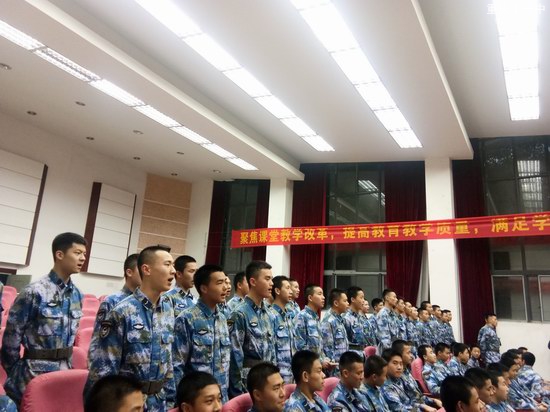 对于我们而言,没有什么比形象的比喻更加有说服力了。李校长先是揭示了这样一种社会现象:父母们常说,有必要把我们家的“二流子”送到军队去锻炼一下。为什么会有这样的现象?是什么能让“二流子”在军队中发生翻天覆地的改变?李校长又接连抛出这两个问题。“铁一般的纪律”、“绝对的服从”、“严格的管理”等,海航学子们踊跃回答,李校长肯定大家的答案之后,又提出一个新的问题:“军队是个熔炉,能把粗铁练成好钢,可我觉得,你们比‘二流子’更加难以‘熔化’,谁能说说为什么?”这一次,我们纷纷陷入沉思,“二流子”有和军人一样的拼劲、闯劲,而我们作为普通的学生,正缺乏这一点。李校长说,其实是因为,“二流子”们被社会所厌弃,没有后路,只能鼓足了劲儿向前冲,蜕变而复生,而我们可能因为还有退路,便不能最大程度的激发出潜力,但必须坚信,来到海航,就是要蜕变,要成为“军人中的精英”。