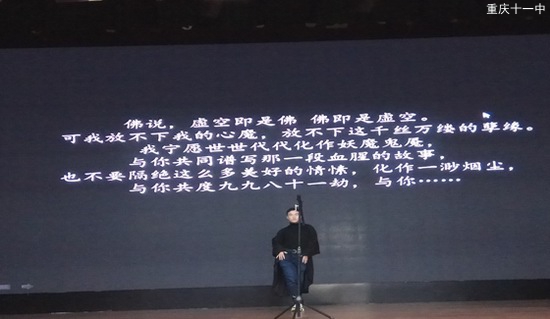 当齐天大圣向这天怒吼时;当石头被赋予各种涵义时;当灰姑娘与王子的结局是悲剧时……当经典遇上创新。在创新的内涵里无疑就是在原有的血脉里注入你的鲜活的灵魂。而高2020级22班的同学们每一个人都重燃了热血,他们用歌声唱出了悟空内心的无可奈何;用表演展示出了灰姑娘的现实爱情悲剧;用朗诵诠释出了他们的信仰;用一首小辛运诉出了对班主任的感谢与陪伴。