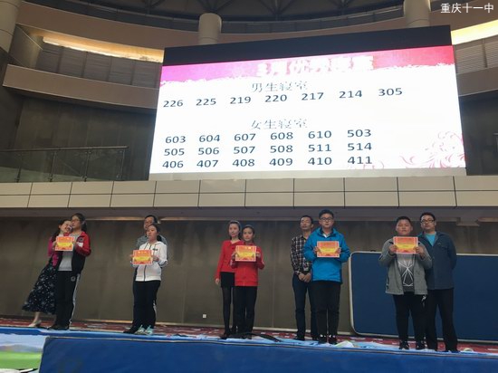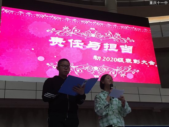 2018年4月18日,重庆市十一中初2020级的全体师生在体育馆内集合,召开了一次盛大的表彰大会。