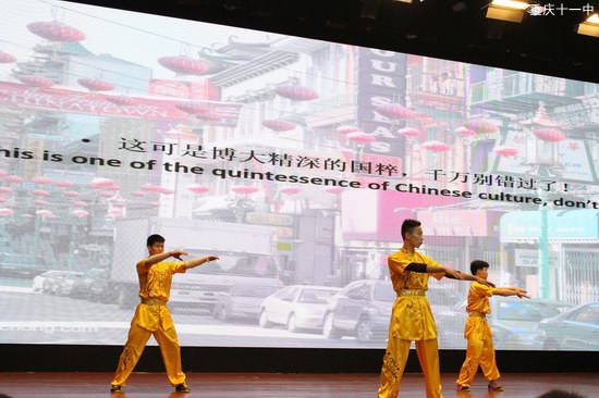 接下来,学生自编剧《乡情》和小品《老外学功夫》带领全场观众从战火纷飞的重庆一路走到今天的网红重庆,体验了重庆大半个世纪的成长和变迁。既提醒我们铭记历史,化悲愤为力量,又让我们以开放的心态去拥抱重庆的新变化。