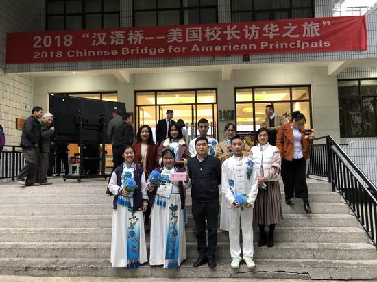 今天,来自美国的28位教育界人士抵达重庆,开始2018年“汉语桥——美国校长访华之旅”活动。我和几位民乐团成员在欧宾副校长的带领下也来到重庆南开中学礼堂,与其他学校的师生欢聚一堂,参加了接待活动。