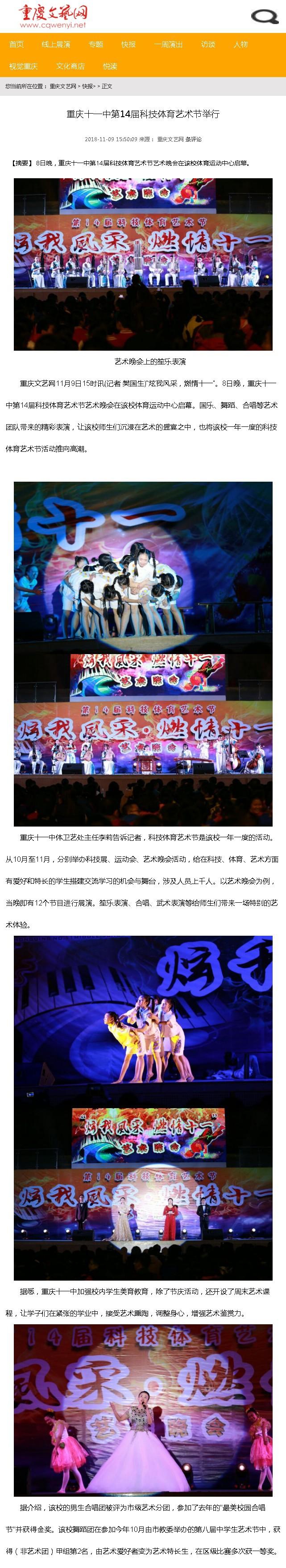 [重庆文艺网]重庆十一中第14届科技体育艺术节举行