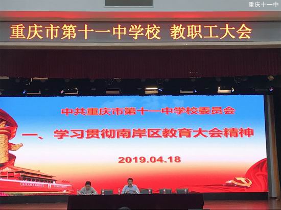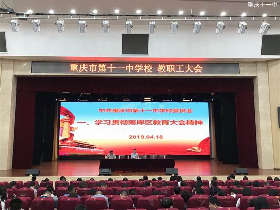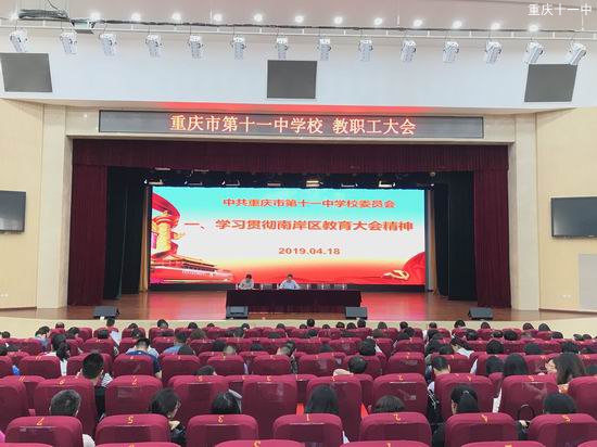 2019年4月18日,重庆市第十一中学校全体教职工在文益堂集中学习南岸区教育大会的讲话精神。