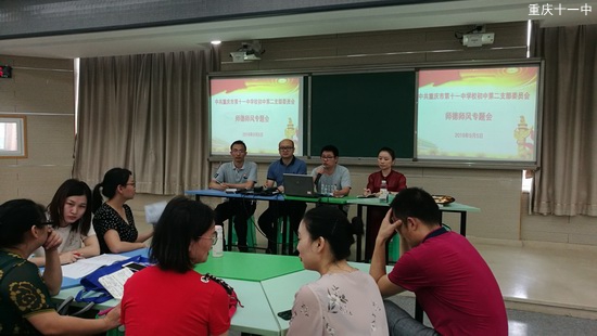 2019年9月,重庆市第十一中学校初中第二党支部利用周四集中学习时间,组织初2020级全体教师和党员学习习近平总书记在“不忘初心、牢记使命”主题教育工作会议上的讲话,并分享了特级教师的教学经验,加强年级师德师风建设,推进毕业年级业务工作的实施。