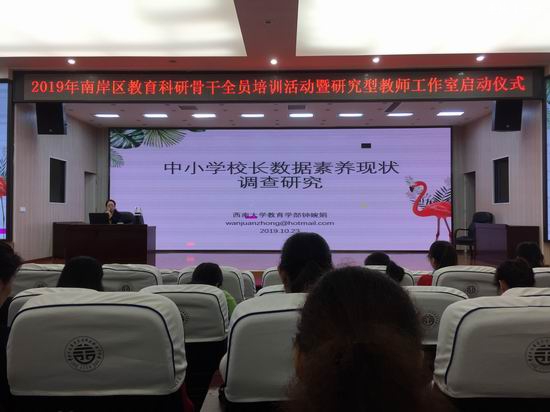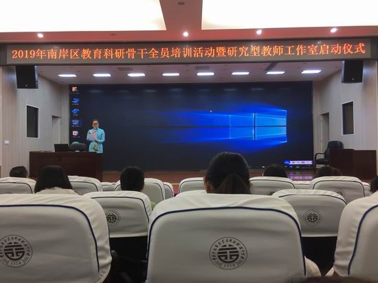 今天的培训活动,主要有两项议程。第一项议程是西南大学教育学部钟婉娟教授的专题讲座;第二项议程是南岸区研究型教师工作室启动仪式。