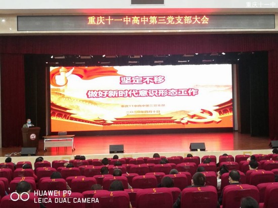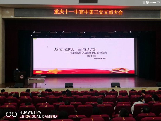 2020年4月10日下午。中共重庆市第十一中学习下高中第三支部在文益堂召开意识形态专题会。