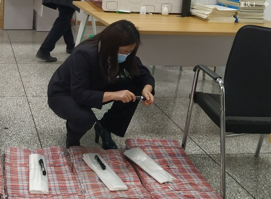 2019年12月,我国湖北武汉爆发了“新型冠状病毒肺炎”,国家随即启动了重大突发公共卫生事件一级响应。疫情防控期间,各省市都开展了“停课不停学”的“线上教学”活动。鉴于绝大部分学生没有带教材回家的情况,以及长时间盯着电脑或手机有损学生的身体健康,毛阿英主任立即召集年级领导小组紧急会议,并率先在学校启动给学生邮寄教材和学历案的工作。2020年2月29日,毛阿英主任召集卓越班和海航班教师走进教室,走进学生宿舍,一本一本地寻找,一个一个地封装,一包一包地邮寄。3月1日,毛主任又召集班主任和教师志愿者分批给年级学生邮寄教材,确保每一位学生在网课期间都能拿到教材。学校花坛边一摞摞教材,映衬着弯腰分装的毛老师。她蹲在那儿,逐一分拣、包装、登记,不知不觉中半天时间就过去了。她用力捶捶发酸的脊背,看到那分装完毕的学生教材,眉眼里尽是掩不住的笑!