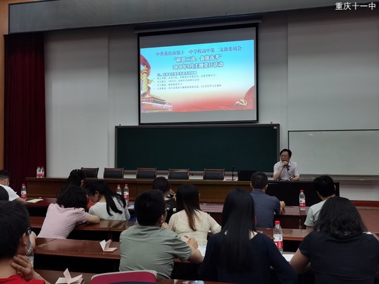 2020年5月19日晚上6:30高中第二党支部在CBD校区科技报告厅举行5月“研思二诊,备战高考”主题党日活动,活动由支部书记艾林同志主持,学校党委书记钟进友同志、党委副书记欧宾同志、党委委员谢晓斌同志、肖开模同志、工会主席杨喻虹同志以及学校三办五中心所有主任全部列席参加。