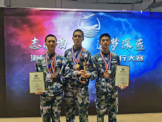 代表重庆市海军青少年航空学校(重庆市第十一中学校)出征的是海航2019级王潇、唐良宝、杨林龙三位同学。