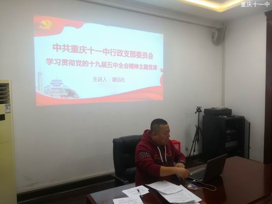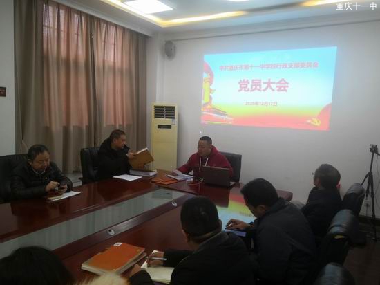 2020年12月17日下午三点,重庆十一中行政党支部在精益楼会议室召开了12月行政党支部主题党日活动。会议由党支部书记谭远松同志主持,支部28名党员参加本次会议。