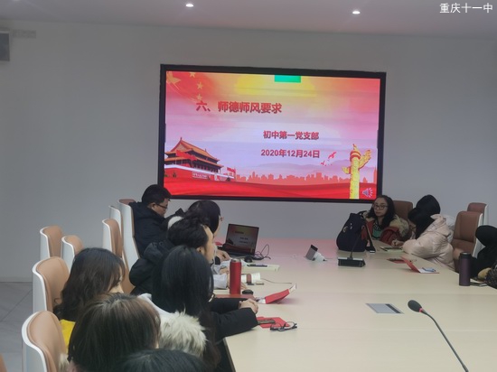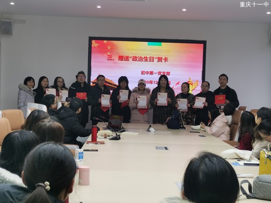 12月24日下午,初中第一党支部召开党员大会,开展“过政治生日”主题党日活动。会议由支部书记周登秀同志主持。