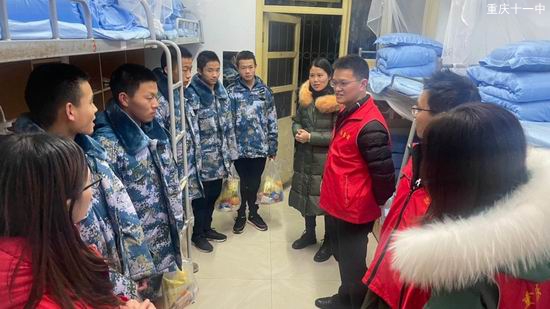虽然他们与家相隔千山万水,但是十一中就是他们的家。因为他们所处的班是一个温暖的班,他们所在的年级是一个温暖的年级。他们不会感到孤独,不会缺少其他学生应该有的元旦的快乐。当晚,年级童国福主任带领领导小组成员及相应班的班主任给他们带去家的问候。