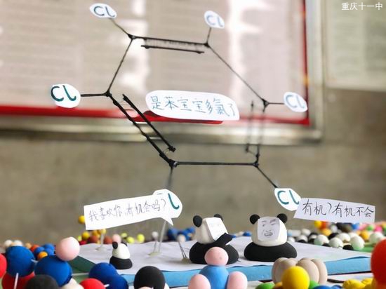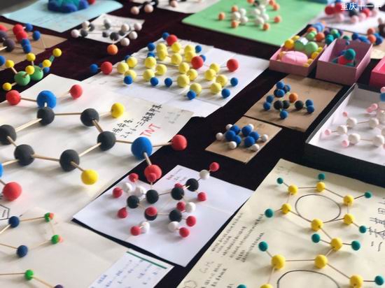 有机物以碳元素为载体,是生命诞生的物质基础。不同元素的原子在空间以不同角度结合成键,创造出一个绚丽多姿的有机世界。高2022级的学生们虽然初入有机化学的大门,但他们丰富的想象力和独特的创造力却使得眼前这些有机分子具有了一份独特的魅力。已知最初都是源于未知,学生们对于未知的探索永不停息,他们小心翼翼地揉捏、连接、调整,创造出了他们所看见的稚嫩又迷人的“有机世界”。