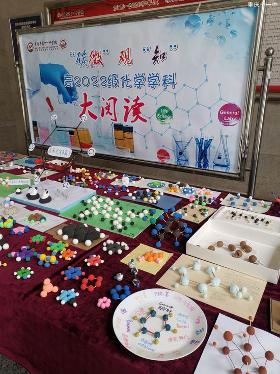 秉持重庆十一中学校“大阅读”理念中的“广泛阅读”、“深度阅读”、“终身阅读”的指导精神, 2021年3月19日,高2022级化学备课组推出化学学科大阅读活动——微观有机分子模型展览,引来学校师生驻足观看。