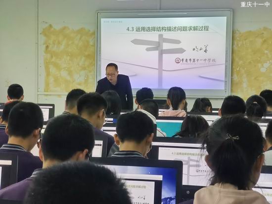 2021年3月25日,重庆市信息技术名师培训班的老师们来到重庆市第十一中学校,与我校信息技术教师一起进行教学研讨交流活动。上午第3节课,我校教师发展中心副主任明正华老师为此次研讨活动献上了《运用选择结构描述问题求解过程》一课。名师培训班及我校信息技术老师们参与了听课与评课。