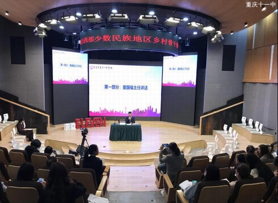 3月19日下午,“同心·彩虹行动”助力西部少数民族地区乡村骨干教师成长公益培训班座谈会在重庆市第十一中学校识益演播厅举行。重庆市第十一中学校(中国科学院大学重庆学院附属科技中学)副校长李顺林、教师发展中心副主任童国福、学生发展中心副主任李莉出席会议。重庆市第十一中学校高2023级教学组长刘东华主持会议。