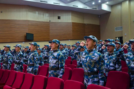 要实现心中飞天巡海的梦想,就必须要有一颗奋斗的心,一颗为实现自己的梦想而不断奋力拼搏的心。此刻,滚烫热血在学员们的心中翻涌,一句句铿锵有力的誓言回荡在会场。最后全体学员与校领导们一起齐唱《强军战歌》,歌声洪亮,歌声震耳欲聋,歌声雄武有力,也标志着开学典礼圆满结束。