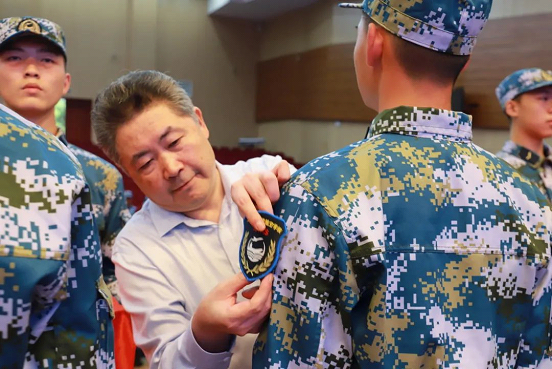 典礼上,校领导分别为海航2021级新学员授章。一枚小小的臂章,承载着的是理想,是责任,是未来保家卫国的雄心壮志。期待这些海航班的新同学们能够在十一中的沃土上,在学校老师的精心培育下,奋发向上,磨砺意志,为实现自己的梦想奋发图强。