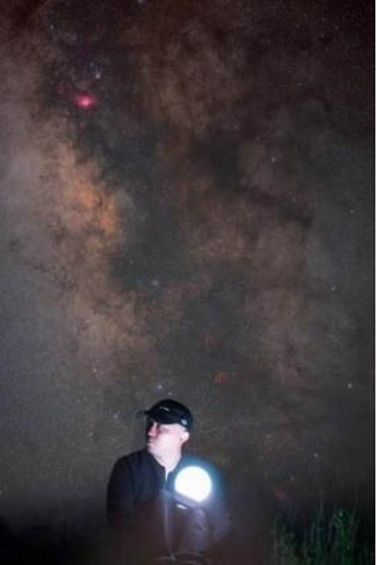 从黄道十二宫,讲到牛郎织女的故事,老欣对着他拍摄的图片为我们指着牛郎星和织女星,一边娓娓道来,“其实他们隔了16光年,也就是说他们发条微信对方都要十六年之后才能收到……”