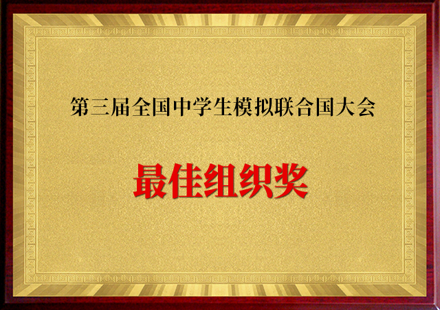 第三届全国中学生模拟联合国大会最佳组织奖