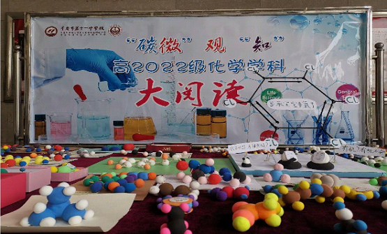 秉持重庆十一中学校“大阅读”理念中的“广泛阅读”、“深度阅读”、“终身阅读”的指导精神, 2021 年 3 月 16 日,高 2022 级化学备课组推出化学学科大阅读活动——微观有机分子模型展览,引来学校师生驻足观看。